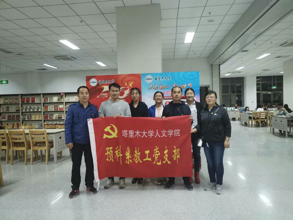 为学习贯彻落实习近平总书记关于教育的重要论述和重要指示批示精神,提升预科系党员、教师为党育人、为国育才的责任感和使命感,实现三全育人,10月8日晚,人文学院预科系党支部在新时代广场开展“党旗映天山”主题党日活动。预科系教工党支部书记王春蕾及全体党员,预科学生参加活动。