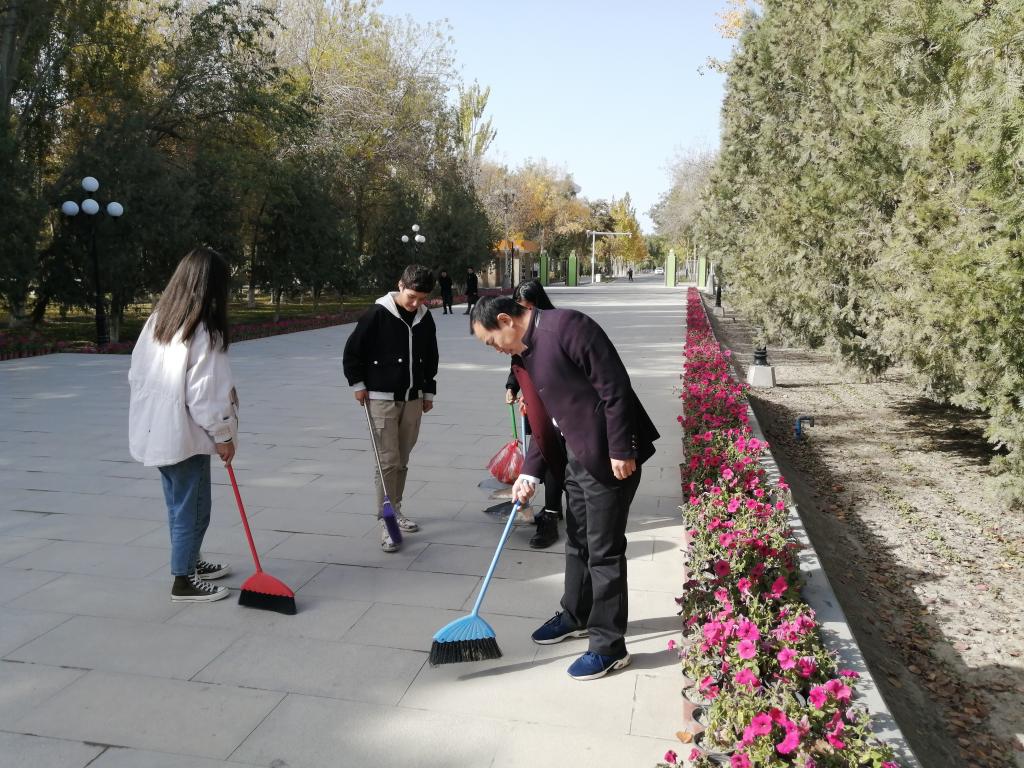 党员和学生来到红色文化广场,有的拿起扫把将道路上的落叶、花坛里的垃圾清扫干净,有的弯下腰捡起丢在角落里的烟头,有的拿起毛巾仔细擦拭王震铜像底座。志愿活动的开展起到了良好的环保宣传作用,提醒广大师生不要乱丢垃圾,共创美好校园。