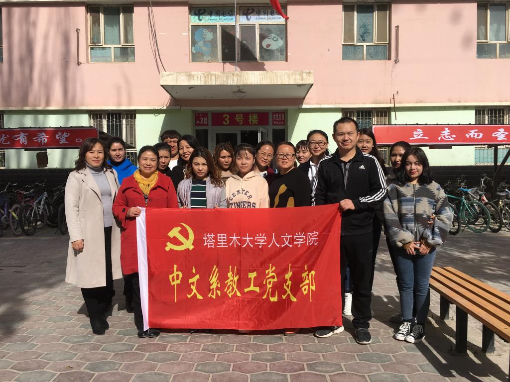 为扎实有效开展“不忘初心、牢记使命”主题教育,积极发挥基层党支部战斗堡垒作用,10月26日上午,中文系教工党支部组织支部党员带领结亲学生一起开展“党旗映天山”系列主题党日活动。