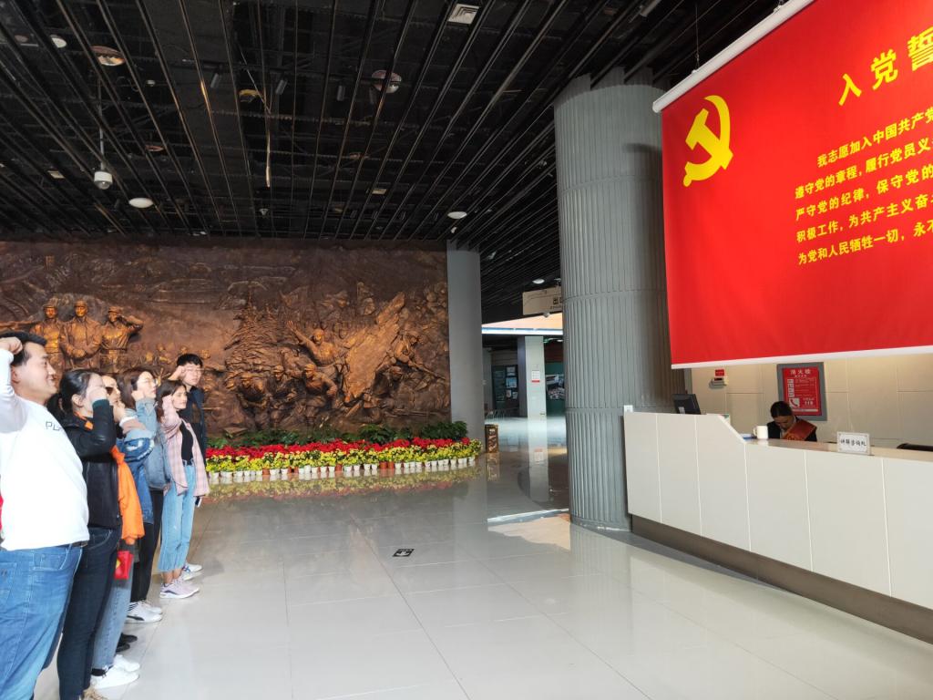 全体教工党员和学生党员站在三五九旅屯垦文化纪念馆前厅,面对党旗庄严宣誓,将入党誓词的每一句话、每一个字都铭刻在心。三五九旅屯垦文化纪念馆的参观学习,是一次爱国教育的过程,是一次追寻老一辈军垦战士足迹的过程,更是一次党员同志寻初心、自省的过程。