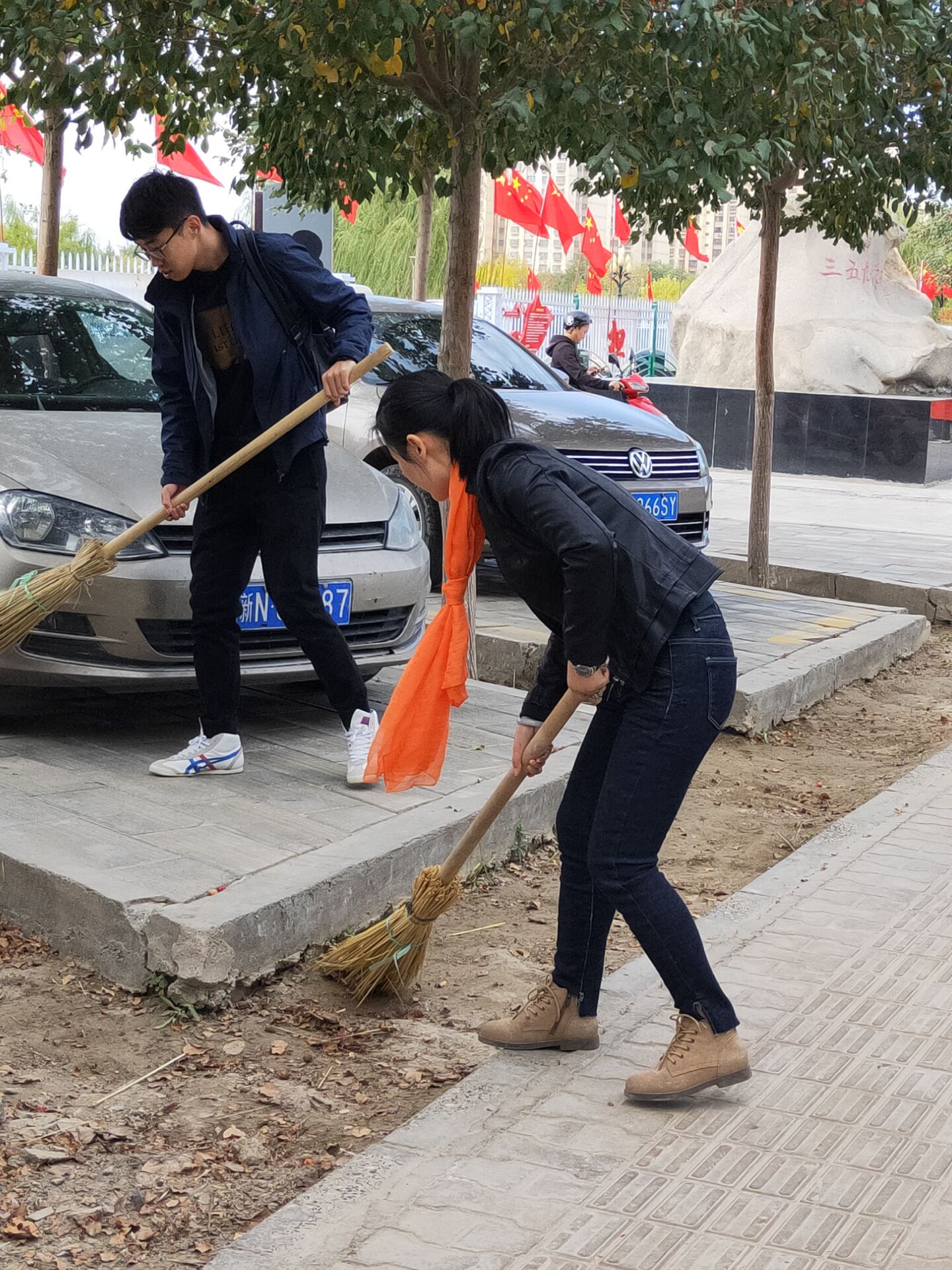 在此次活动中,志愿服务贯穿了始末。在参观知青林途中,师生不忘捡拾知青林垃圾,维护环境卫生。在参观纪念馆时,主动帮助纪念馆工作人员打扫展馆外围的卫生,包括喷泉周边的垃圾清运和停车位周边的垃圾清扫。