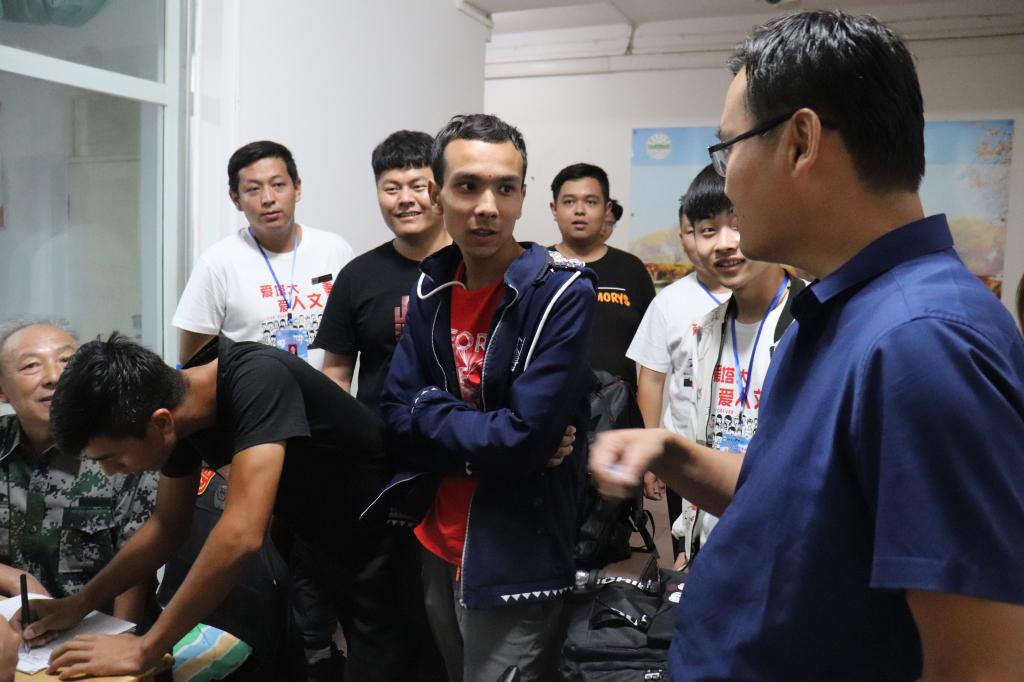 9月4日晚,人文学院院长肖涛、党委副书记雷长柱、副院长秀梅带领人文学院党委委员、全体辅导员老师一起赴学生公寓楼东四楼下的迎新报到处指导迎新工作,到新生宿舍看望新生。
