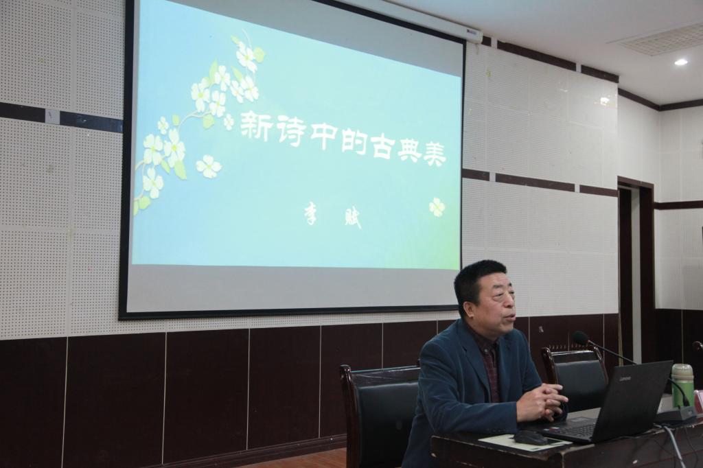 当日上午在行政楼B座117室,刘生良教授与中文系师生一起讨论了古典文学范畴内《庄子》哲学思想对文学的影响。李赋教授以《新诗的古典美》为题,与学生一起从回归与体认新诗古典美的题中之义;自由与规约新诗古典美的呈现方式;转换与再造新诗古典美的理想愿景三个层面进行了探讨。