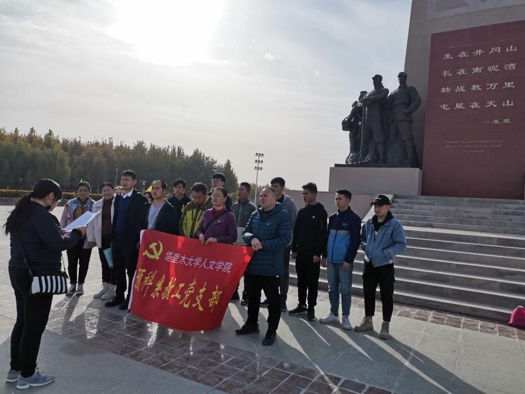 在三五九旅纪念碑前,预科系党支部书记王春蕾同志带领各位党员教师及学生学习了三五九旅精神,认真了解了三五九旅历史沿革和兵团发展史。了解历史、缅怀先烈、传承精神,是此次志愿活动的初衷。
