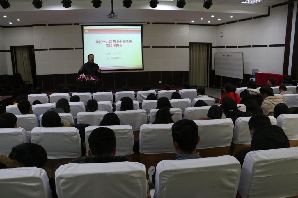 为深入学习贯彻党的十九届四中全会精神,12月7日下午,人文院宣讲团成员张建军副教授,在行政楼B座117宣讲党的十九届四中全会精神,人文院预科班学生听取报告。