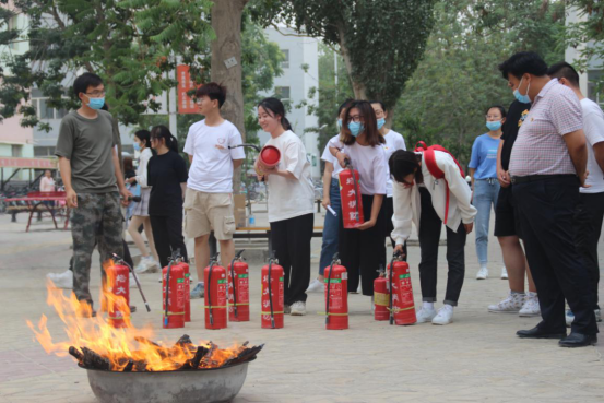 人文学院各个宿舍严格按照消防指示行动,在消防警报拉响、各楼层吹紧急哨、放迷彩烟之后迅速有序进行了撤离。随后由老师为大家普及了一些实用的应急技巧,并在确保安全的前提下学习了灭火器的使用方式。演练过程中,指挥人员沉着冷静,同学们反应敏捷,出色、圆满的完成了预定科目的演练。