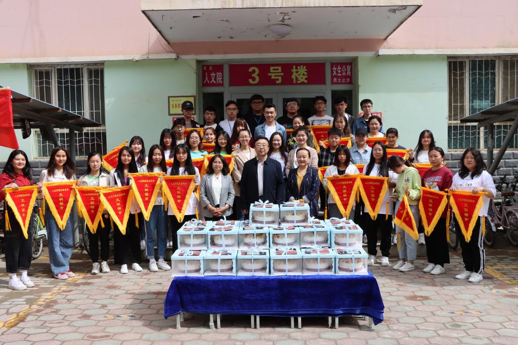 5月13日,多彩胡杨”民族团结温暖小窝-文明宿舍共选出34间文明,当天学院领导向获得“民族团结”文明宿舍的同学们颁发流动红旗并赠送蛋糕以资鼓励。