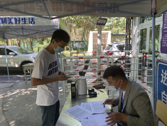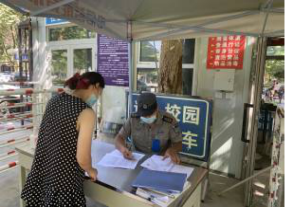 (图四)安保人员对考生进行报备信息核验