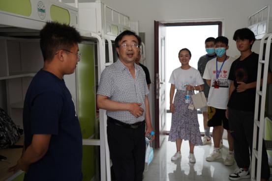 学院领导几度莅临迎新点,对现阶段迎新工作进行了指导,并到新生宿舍对新生进行了慰问及关怀。领导们走进新生宿舍,亲切询问了解同学们的基本生活情况,并耐心细致地为新生答疑解惑,祝福同学们尽快融入多彩的大学生活,同时叮嘱同学们遵守寝室管理规定,做遵规遵纪的胡杨青年。新生们也对领导们的关心慰问倍感兴奋,同老师分享自己的感受,与老师相谈甚欢,现场气氛温馨融洽。