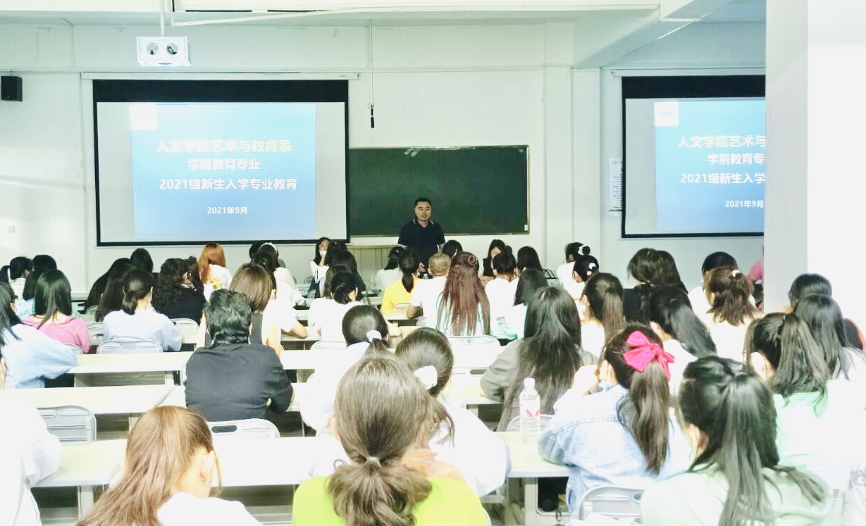 为切实做好艺术与教育系2021级学前教育专业入学教育活动工作,维护正常的教学秩序,依据学校《关于2021级新生入学教育、专业教育及体检的通知》,按照学院入学教育工作计划安排,学前教育专业于2021年9月17日在新文科楼219室举行了2021级学前教育专业入学专业教育活动。