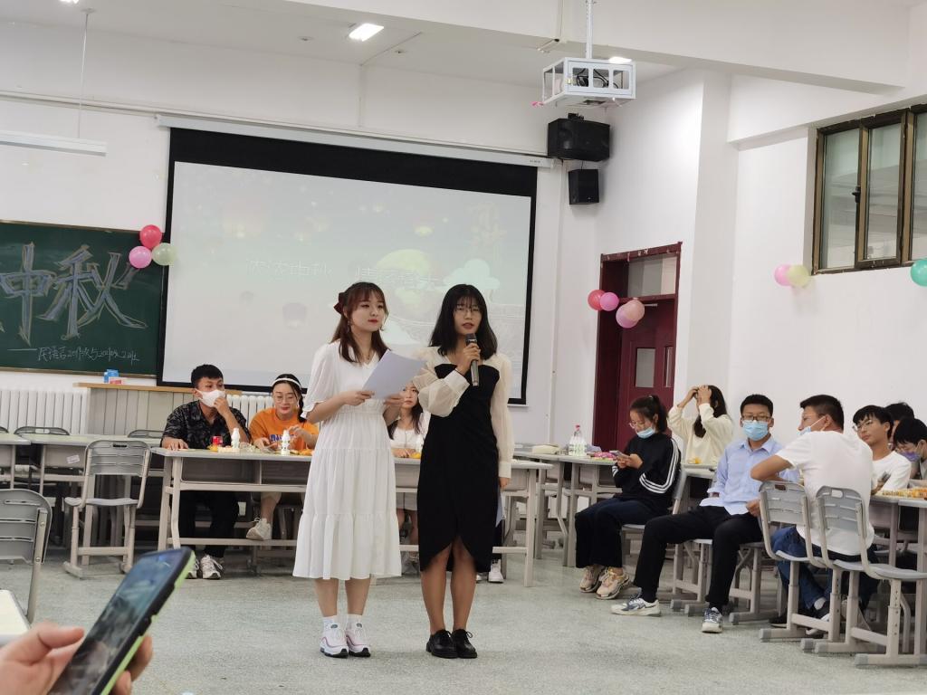 活动伊始,中国少数民族语言文学2019级的史玉凤和2021级2班的王慧荣同学致开场词:每逢佳节倍思亲,情深谊长盼相聚。中秋节作为中华民族的传统节日,寄托了人们祈盼风调雨顺、五谷丰登、团圆幸福、生活美满的美好愿望。