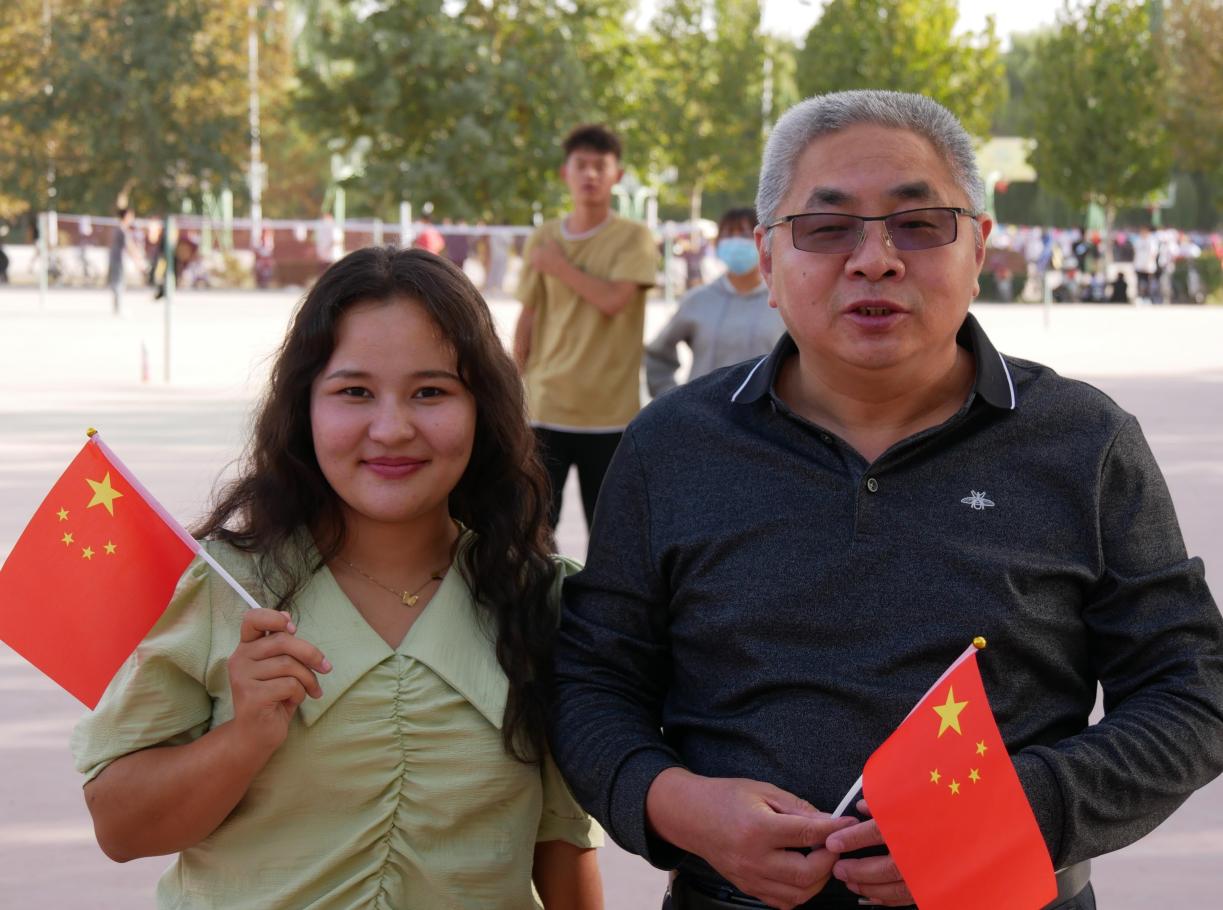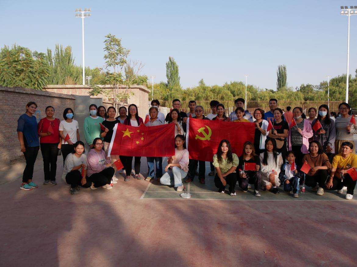 为推动党史学习教育走深走实,扎实开展民族团结工作,2021年10月1日,人文学院中文系全体教师与自己的结亲学生在中文系党总支书记屈玉丽和中文系教师党支部书记李玲老师的带领下,开展了“民族团结一家亲,喜迎国庆颂党恩”活动。