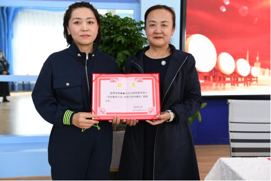 接下来,肖涛教授宣布了聘请任绚丽同志颁发塔里木大学教育硕士(学前教育)研究生校外导师的决定,并颁发了聘书。