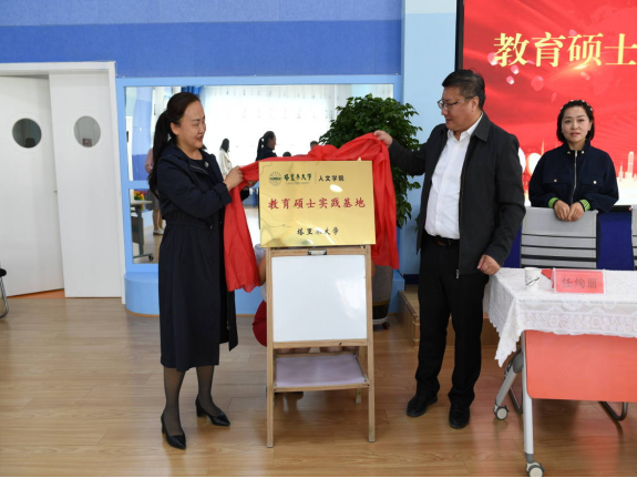 交流之后,肖涛教授与塔里木第二幼儿园负责人任绚丽同志签署了教育硕士实践基地合作协议,并邀请刘春阳同志共同揭牌。