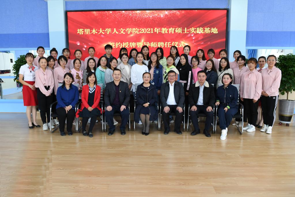 为贯彻教育部对专业硕士的培养要求,更好地发展人文学院研究生教育,促进专业教育硕士发展,在学习好理论知识的同时加强实践动手能力,2021年10月13日下午塔里木大学人文学院院长肖涛教授率领相关负责人以及学前教育2020级和2021级研究生来到塔里木第二幼儿园,举行塔里木大学人文学院研究生教育实习基地签约挂牌仪式。第一师教育局党组成员、副局长刘春阳同志及塔里木第二幼儿园所有老师也参加了本次挂牌仪式。