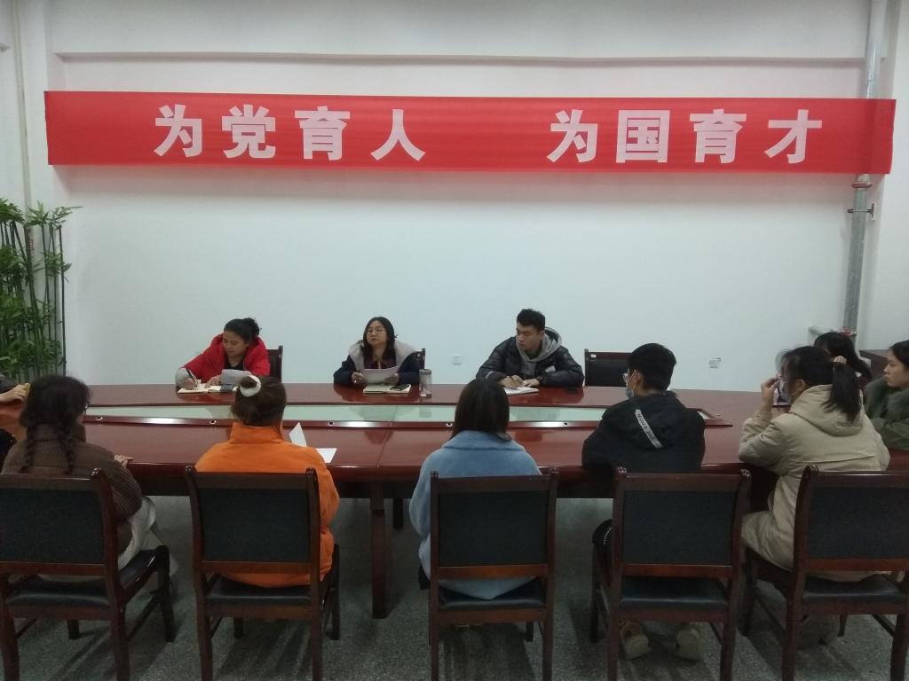 11月10日下午18点,人文学院召开2021-2022学年第2学期期中教学检查学生座谈会,学院副院长秀梅主持会议,教务办主任万里萍,学办肖克来提·海依来提老师,以及学院部分班级的学生代表参加了会议。会议在新文科楼231会议室召开。