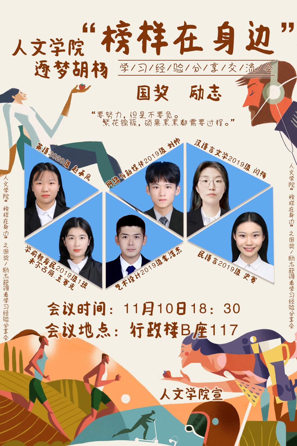 为推进学党史、悟思想、办实事,营造向优秀看齐的浓厚氛围,发挥榜样示范带动作用。11月10日下午,人文学院分别召开逐梦胡杨——“榜样在身边”第二期国家奖学金和励志奖学金获得者学习经验分享会、学生代表座谈会。学院党委副书记马明、全体辅导员及学生代表参加。