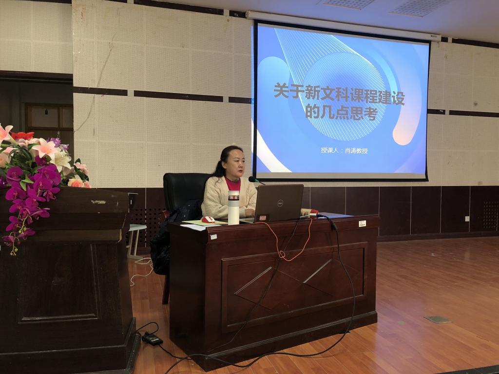 11月26日下午,人文学院院长肖涛教授为全院教师作了题为《关于新文科课程建设的几点思考》的一流本科课程申报专题培训,培训在行政楼B座117会议厅举行。