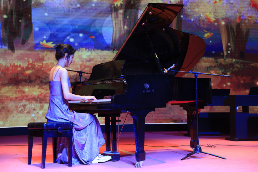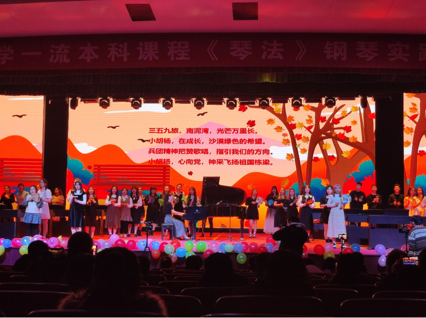 音乐会上的节目精彩纷呈,《我的中国心》、《龙的传人》、《我和我的祖国》表达了当代大学生的爱国主义情怀,四手联弹《听我说谢谢你》表达了对抗疫一线的医护人员、志愿者的由衷感谢,儿歌弹唱表演《小胡杨》表达了胡杨学子热爱祖国、热爱党、热爱兵团的坚定理想。情感的共鸣引得台下观众数次掌声雷动,绵延不绝。