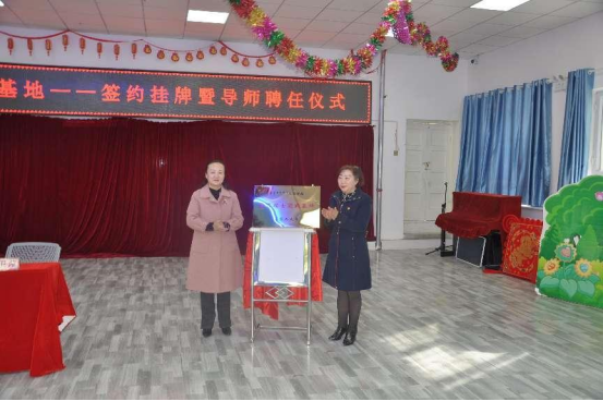 人文学院与第一师百花幼儿园签订了教育硕士实践基地合作协议。杨桂芝与肖涛共同为基地揭牌。
