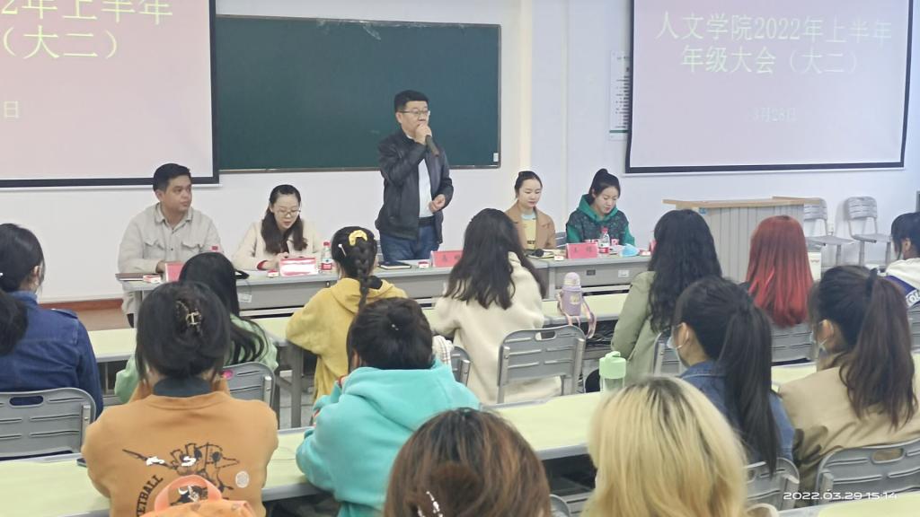 为全面加强学生思想政治引领,推进学院学风建设。人文学院学生办公室于3月16日起至4月13日结合不同阶段学生成长发展需求、专业特点,有针对性的分年级、分批次组织召开年级大会,共计9场,学院党委副书记马明全程参加会议。