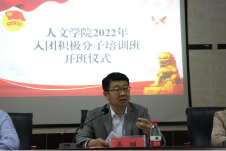 为深入贯彻落实学校第二次团代会精神,进一步发展壮大我院团员青年队伍,不断夯实基层团组织工作基础,人文学院团委于4月9日至16日在文科楼B座117会议室举办了2022年入团积极分子培训班,共70名2021级(大一)入团积极分子参加此次培训。学院党委副书记马明出席开班式并讲话,学院团委副书记邹玲主持。