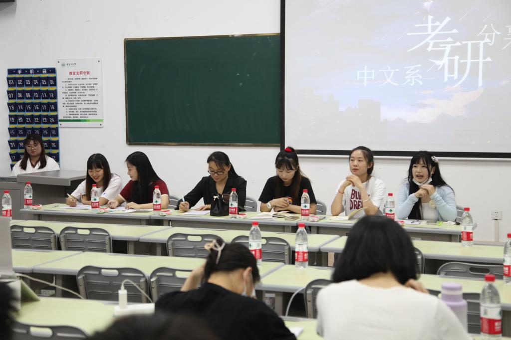 为进一步增强中文系2019级学生对考研的认识,激发考研热情,明确考研目标,掌握相关考研技巧,了解更多考研信息,提前规划好学习方向,2022年6月7日晚21: 30,由人文学院中文系主办的“民族团结一家亲”——中文系考研经验交流会在我院新文科楼233教室举行。本次交流会诚邀人文学院中文系党总支书记屈玉丽教授和21届毕业生中考研成绩优异、经验丰富的汉语言文学专业许洁、中国少数民族语言文学专业蔡颜涛以及现就读于本校学科教学(语文)专业2021级研究生的陈越、李恒琳、赵明五位同学。汉语言文学2019级学生张炜主持,150余名学生参加了此次线上、线下考研经验分享会。