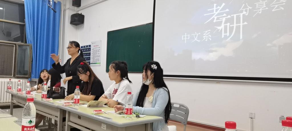 首先,屈玉丽老师代表中文系作了重要讲话。她对22届毕业生考研取得的优异成绩给予了高度肯定和热烈祝贺,深入分析了当下的考研形势,鼓励同学们积极考研,努力拼搏,奋斗不止,并对此次交流会的成功举办致以衷心祝愿。