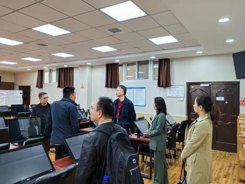 会后,孙丽萍一行对西安外国语大学国家级翻译实践教育基地、“一带一路”跨语言大数据创新平台、日本文化经济学院远程教育实验室、旅游学院多功能综合实验室、西安外国语大学多语种口译实训中心等实验室进行参观学习,西安外国语大学实验室相关负责老师对实验室建设和设备功能进行了详细介绍和讲解。
