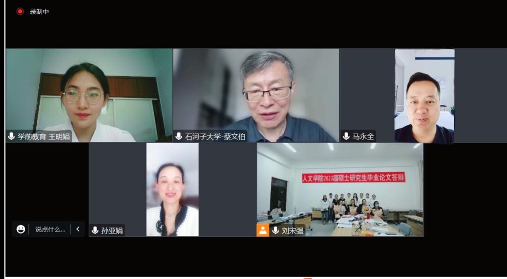 人文学院于5月28日在新文科楼350教室举行了2021级学前教育专业研究生毕业论文答辩会,共10名同学参与本次答辩。蔡文伯教授、孙亚娟教授、马永全教授、王玮副教授、丁洁副教授、侯瑞华副教授、孟媛媛副教授共同组成本次答辩委员会,蔡文伯教授任本次答辩委员会主席,刘宋强老师任答辩委员会秘书。2022级学前教育专业研究生对本次答辩会进行了旁听。