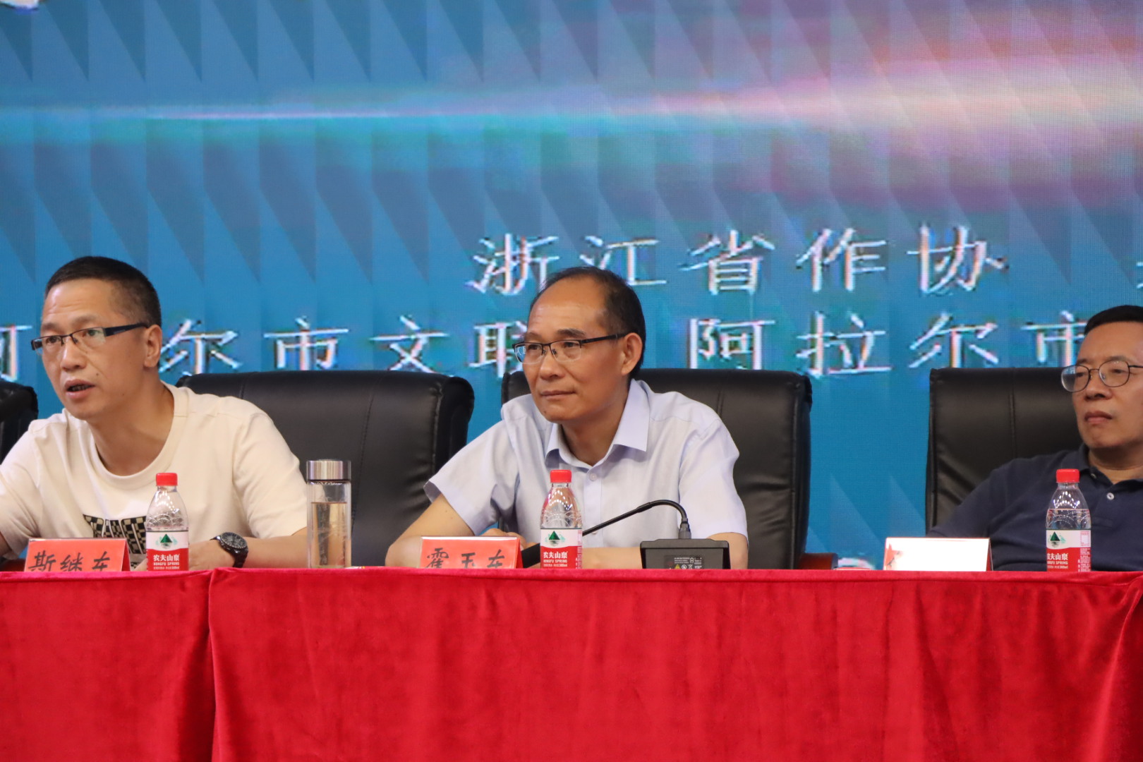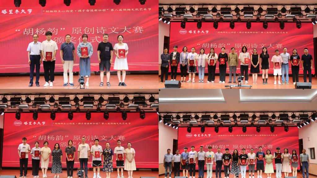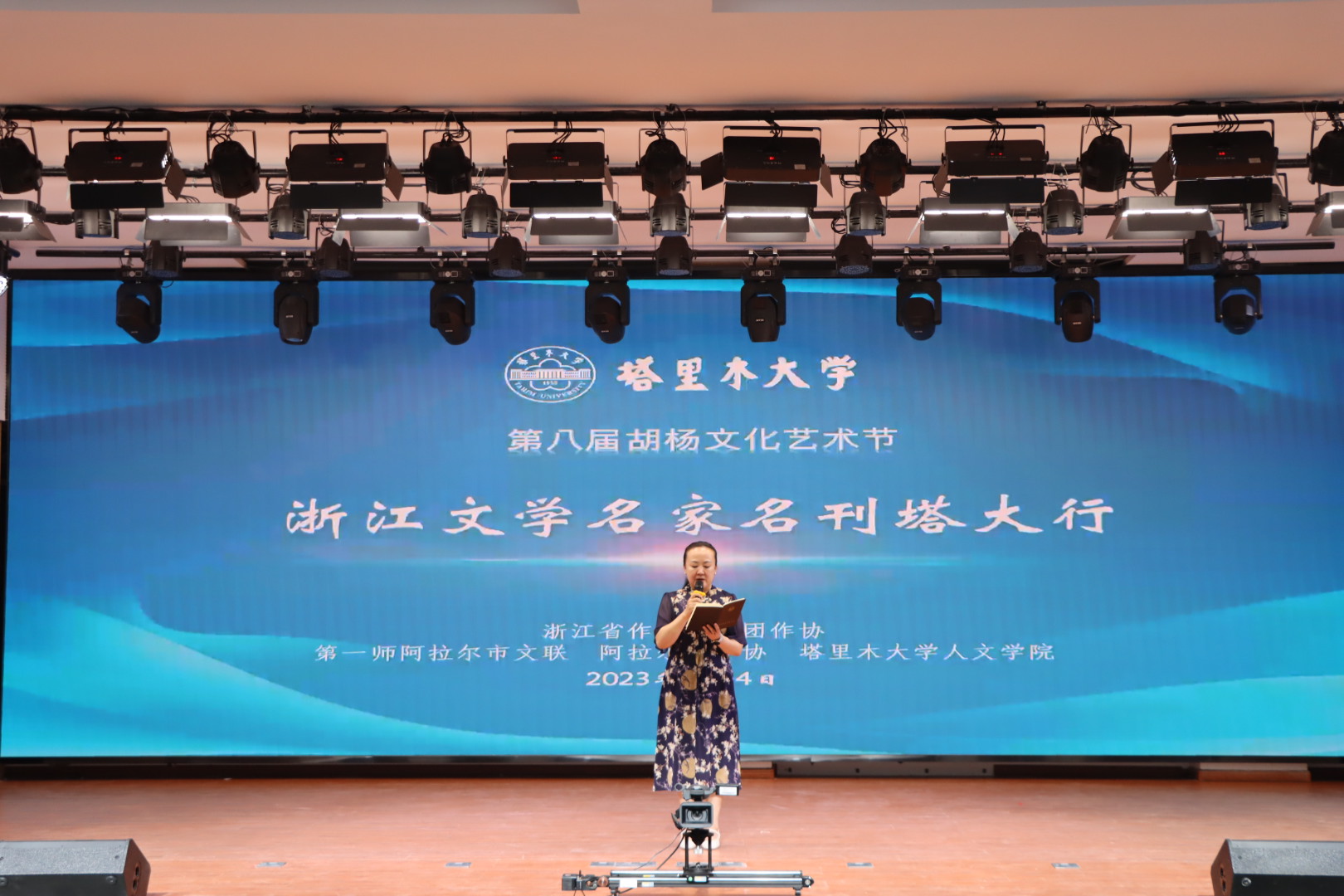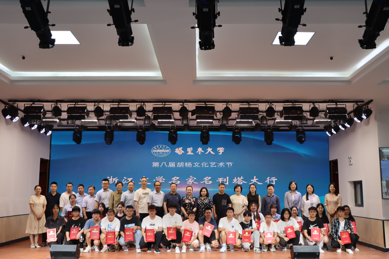 为深入贯彻落实习近平总书记关于文化文艺工作的重要讲话指示精神,切实落实好党的二十大精神。践行文化润疆、文化润校使命,彰显我校责任担当,激发我校师生创作的积极性。6月14日,人文学院特邀兵团文联副主席、第一师阿拉尔市文联主席霍玉东,浙江省作协副主席、浙江《江南》杂志社主编、鲁迅文学奖获得者钟求是,杭州市文学艺术创作研究院院长、《西湖》杂志主编吴玄,绍兴市作协主席、《野草》杂志主编斯继东;浙江省民间文艺家协会副主席 ,《少年儿童故事报》主编毛晓青;中国社会科学院文学博士、湖州学院教授、硕士研究生导师何英;《诗建设》主编,艾青诗歌奖获得者泉子等12人和第一师阿拉尔市作协一行12人在新文科楼518开展浙江文学名家名刊塔大行暨第八届胡杨文化艺术节“胡杨韵”原创诗文颁奖仪式。人文学院院长肖涛,教授胡昌平,教授崔有为,副教授王玮参加活动。
