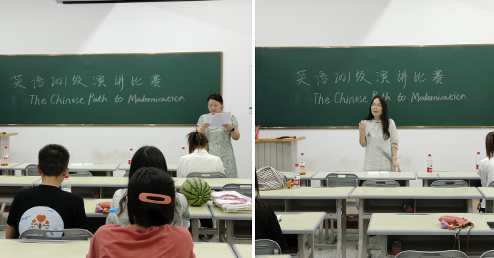 为促进我院英语学科素质教育的发展,提高英语专业班级学生的综合能力,营造浓郁的班级英语学术文化氛围。6月21日,人文学院英语2021级师生以“中国式现代化”为题,在新文科楼103举办了英语演讲比赛,聚焦当代中国,立意深远宏阔。外语系郑红红老师及班主任赵乐老师出席活动并担任评委。