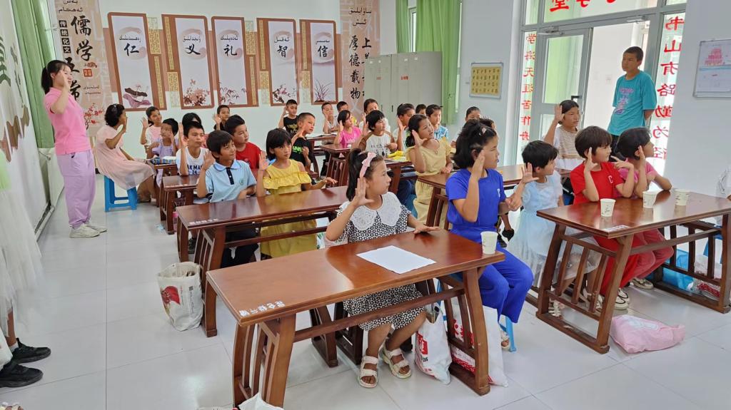 2023年7月4日塔里木大学人文学院“沙漠之花”志愿服务队,在沙雅县古勒巴格乡色日克苏盖提村的“三下乡”教育帮扶活动顺利进行。