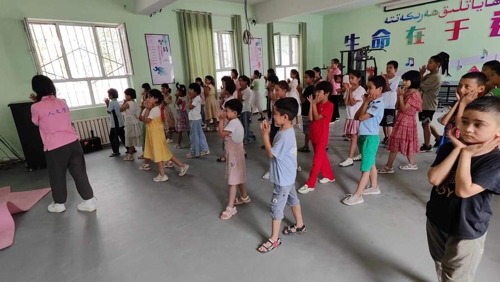 “沙漠之花”团队成员为当地孩子们带来了一场与以往不同的假期“开幕式”。他们充分发挥专业优势,探索新的教学方法。在生动有趣的课堂教学展示和艺体娱乐课程的融合中,通过阶段性心理辅导和全程陪伴,与孩子们互动,打破大朋友和小朋友之间的隔阂,将温暖和鼓励带到了“阳光无法照亮的地方”。(文/蔺敏 摄/阳旅)