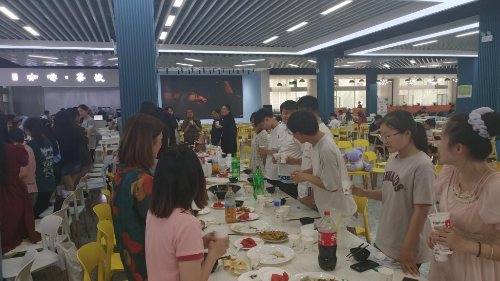 本次活动开展前,班主任和班委与学校后勤及食堂工作人员协商,确定了活动时间、地点,精心选制了芹菜牛肉、鸡肉玉米和韭菜鸡蛋三种馅料,并搭配了特色小菜与清爽水果。同学们用略显生疏的手法包下一个个饱含情意的饺子。餐厅里香气扑鼻的饺子宴在不知不觉中冲淡了大家的离别愁绪,整个活动洋溢着轻松温馨的氛围。