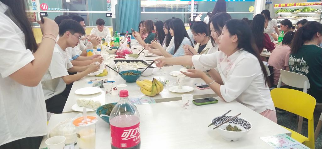 6月11日下午,汉语言文学2019级民族团结暨毕业欢送活动在东区三食堂顺利举行。人文学院屈玉丽老师、胡昌平老师、万素花老师、王玮老师、张兴田老师和汉语言文学2019级全体毕业生参加了此次活动。此次活动由汉语言文学2019级班主任屈玉丽老师主持。班级各民族同学在毕业前夕欢聚一堂,制作享用美味水饺,共同畅谈美好未来。