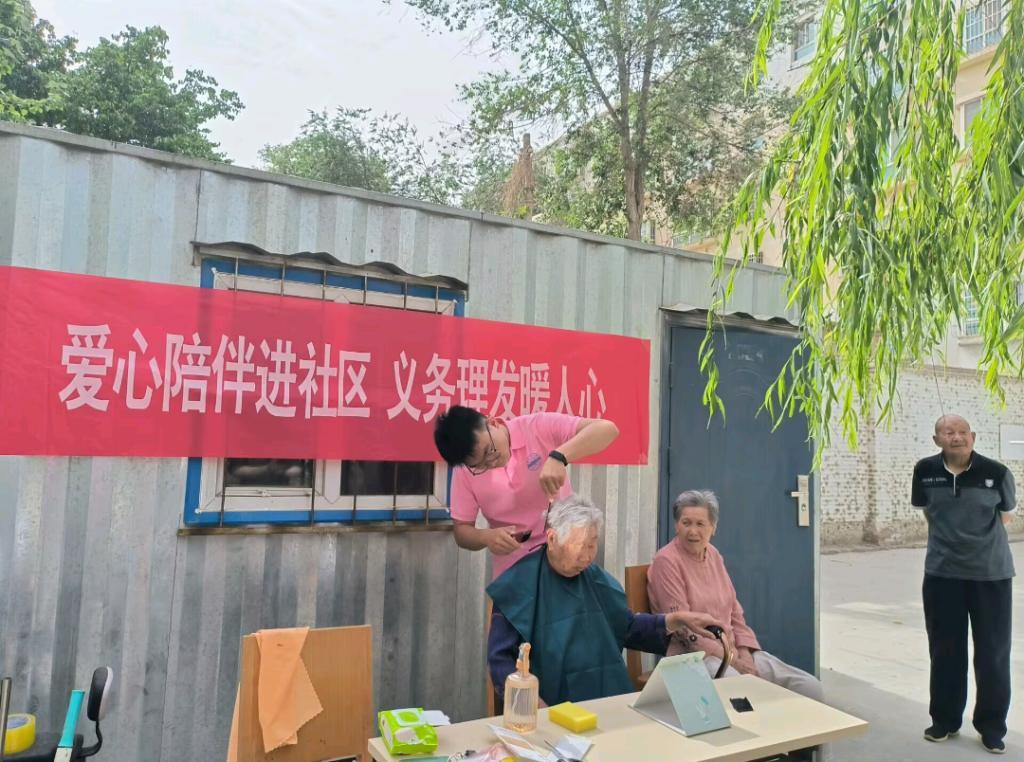 活动期间,胡杨学子在社区简单布置了“流动服务点”,社区居民对志愿者们的到来表示热烈欢迎,前来接受免费理发服务的人络绎不绝。在理发过程中,志愿者们还主动和爷爷奶奶们唠唠家常,倾听他们的心声。