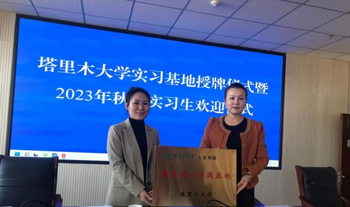 人文学院与阿瓦提县教育和科学技术局在阿瓦提县教科局签订了教育硕士实践基地合作协议。帕坦木·卡迪尔与姚小玲共同为基地揭牌。