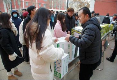 人文学院党委书记杨建军在活动现场亲切慰问学院同学,并表示在期末和考研来临之际,学院为全体在校同学购买牛奶,补充营养,为困难学生购买保暖衣物,让同学们深切的感受到学院的关怀与温暖。未来学院还将继续开展学生关怀系列活动,为同学们提供更多的实际帮助和关怀。