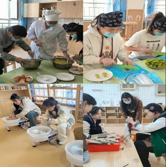 此次教研活动分为三个环节。首先,塔里木第三幼儿园各功能室负责人对功能室进行情况汇报,主持人抛出各功能室研讨主题。各位老师、同学带着主题,从幼儿的视角出发分别进入生活坊、木工坊和陶艺馆进行沉浸式体验。