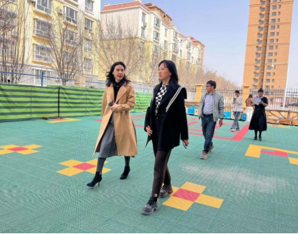 教研开始前,朱静园长带领老师、同学参观并介绍了塔里木第三幼儿园分园的户外环境。