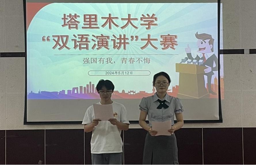 2024年5月12日,塔里木大学人文学院在文科楼B座117举办了“强国有我,青春不悔”为主题的双语演讲大赛。本次演讲比赛由塔里木大学教务处举办,人文学院中文系承办,此次决赛邀请的评委老师有中国少数民族语言文学专业专业负责人高丽娟副教授、中国少数民族语言文学专业教师文且木副教授、阿布拉江·依米提副教授以及汉语言专业教师李蓉老师,中国少数民族语言文学专业2021级的何波同学和刘娇娇同学担任主持。胡杨学子们齐聚一堂,用满腔的热情和对国家的深厚情感,表达了他们对于国家未来的无限憧憬和个人奋斗的坚定决心。