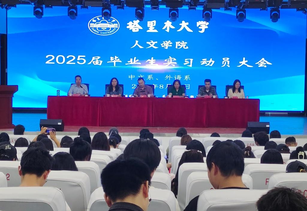 2024年8月26日晚,人文学院在新文科楼518举行中文系、外语系2025届毕业生实习动员大会,会议旨在引领学生做好实习前的准备并提高实习质量,确保实习工作顺利进行。出席本次会议的有人文学院党委副书记马彩云、教务办副主任肖克来提、外语系主任姚小玲、中文系副主任张兴田,实习带队老师左文斌,各专业负责人以及各毕业班班主任。中文系、外语系2025届所有毕业生参加本次动员大会,会议由中文系党总支书记李雪荣同志主持。
