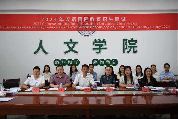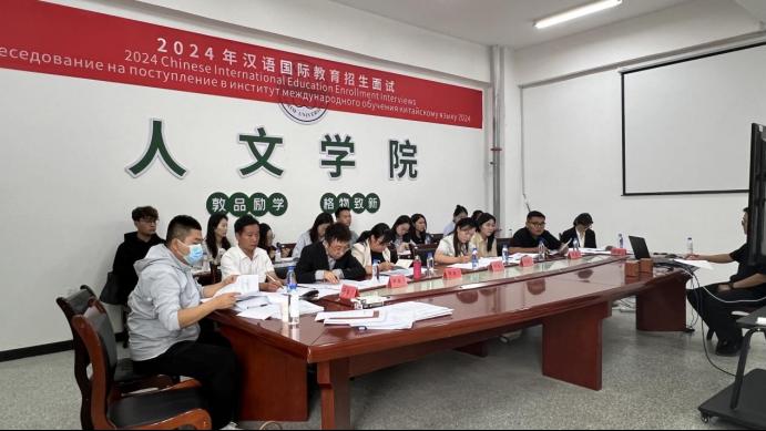 9月6日,我院在新文科楼231会议室举行2024年汉语国际教育研修生招生面试评审会。来自蒙古、孟加拉国、哈萨克斯坦、土库曼斯坦以及巴基斯坦等5个国家的外籍学生参与了面试。我院专门组建了一支由资深教授以及汉语、英语、俄语、乌尔都语、印地语的专任教师担任面试评委。