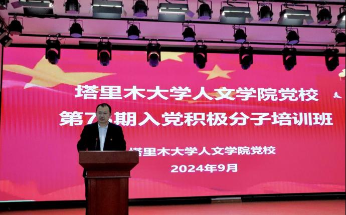 杨建军同志在讲话中强调,举办入党积极分子培训班是为了从源头上把好党员“入口关”,对加强党员队伍建设、培养党的新生力量具有十分重要的意义;勉励全体学员要认真学习党的方针、政策和理论,深入学习贯彻习近平新时代中国特色社会主义思想,争做有理想、敢担当、能吃苦、肯奋斗的新时代好青年;要求全体学员珍惜此次集中培训机会,勤奋好学、务实力行,为建设兵团特点南疆特色一流大学贡献力量。