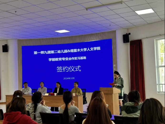 为进一步加强与幼儿园的联系与合作,拓宽毕业生就业渠道,把握最新人才需求动态,听取幼儿园对学生培养的反馈意见和建议,为学院人才培养和教育教学改革提供重要参考,10月31日,人文学院艺术与教育系党总支书记吴艳、副主任张衡山一行前往九团第二幼儿园,对在该园工作的学前教育专业毕业生进行了就业回访工作,完成签约实习基地授牌仪式。