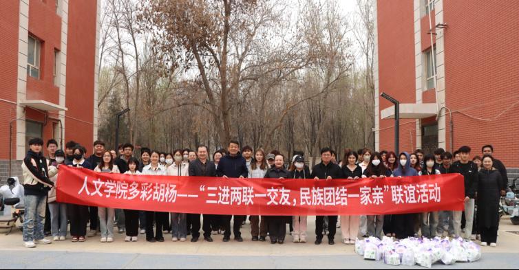 为进一步助力学生成长,构建和谐的师生关系,全面了解学生的学习与生活状况。人文学院3月28日下午开展了“三进两联一交友,民族团结一家亲”活动。人文学院党委书记杨建军,院长肖涛,党委副书记、纪委书记马彩云,副院长王中伟;新闻学院党委委员、副院长王江艳以及学院教职工走进宿舍,与同学们亲切交流,送去关怀与问候。