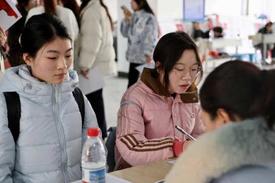 招聘会现场,肖涛、王江艳与毕业生进行亲切交流,询问毕业生面试进度,就工作前景、企业需求等问题进行指导。同时,鼓励同学们结合自身专业优势,积极把握就业机会。
