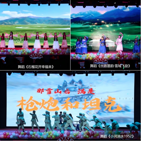 舞蹈《石榴花开幸福来》《丝路墨韵·雪域飞旋》《小河淌水1952》以灵动舞姿展现多元文化交融之美,歌曲《我爱你中国》的深情告白与《风吹麦浪》的田园诗意交相辉映,旋律悠扬、余韵绕梁。相声《卷王之王》以幽默诙谐的语言,引得现场观众互动连连,将晚会气氛推向高潮。舞蹈与走秀结合的《四季·二十四节气》将传统节气文化与现代审美巧妙融合,衣袂翩跹间展现春生夏长、秋收冬藏的生命韵律。