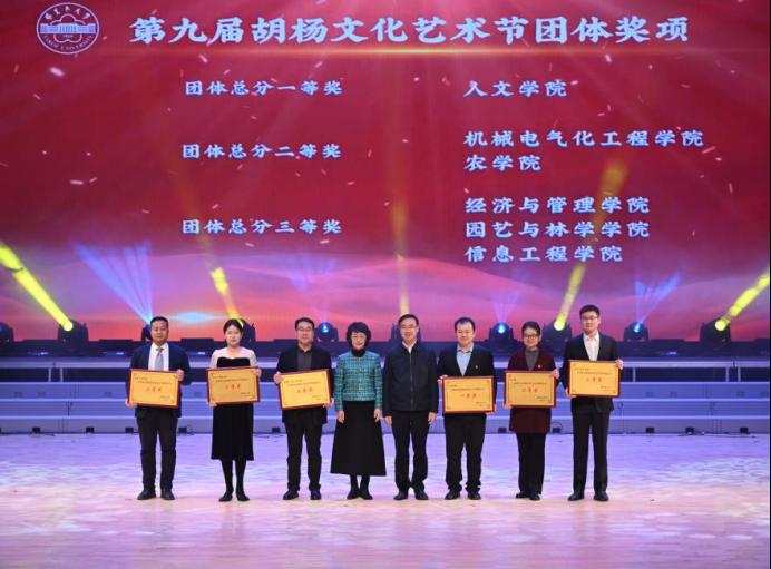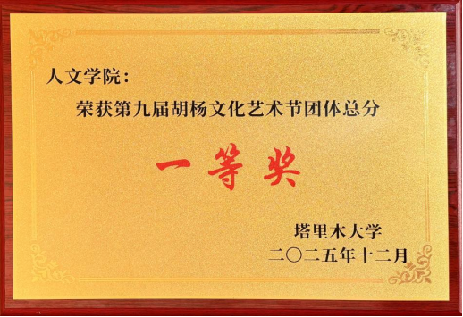 12月9日晚,在塔里木大学第九届胡杨文化艺术节总结表彰暨全国文明校园庆祝大会上,人文学院荣获本次胡杨文化艺术节团体总分一等奖。